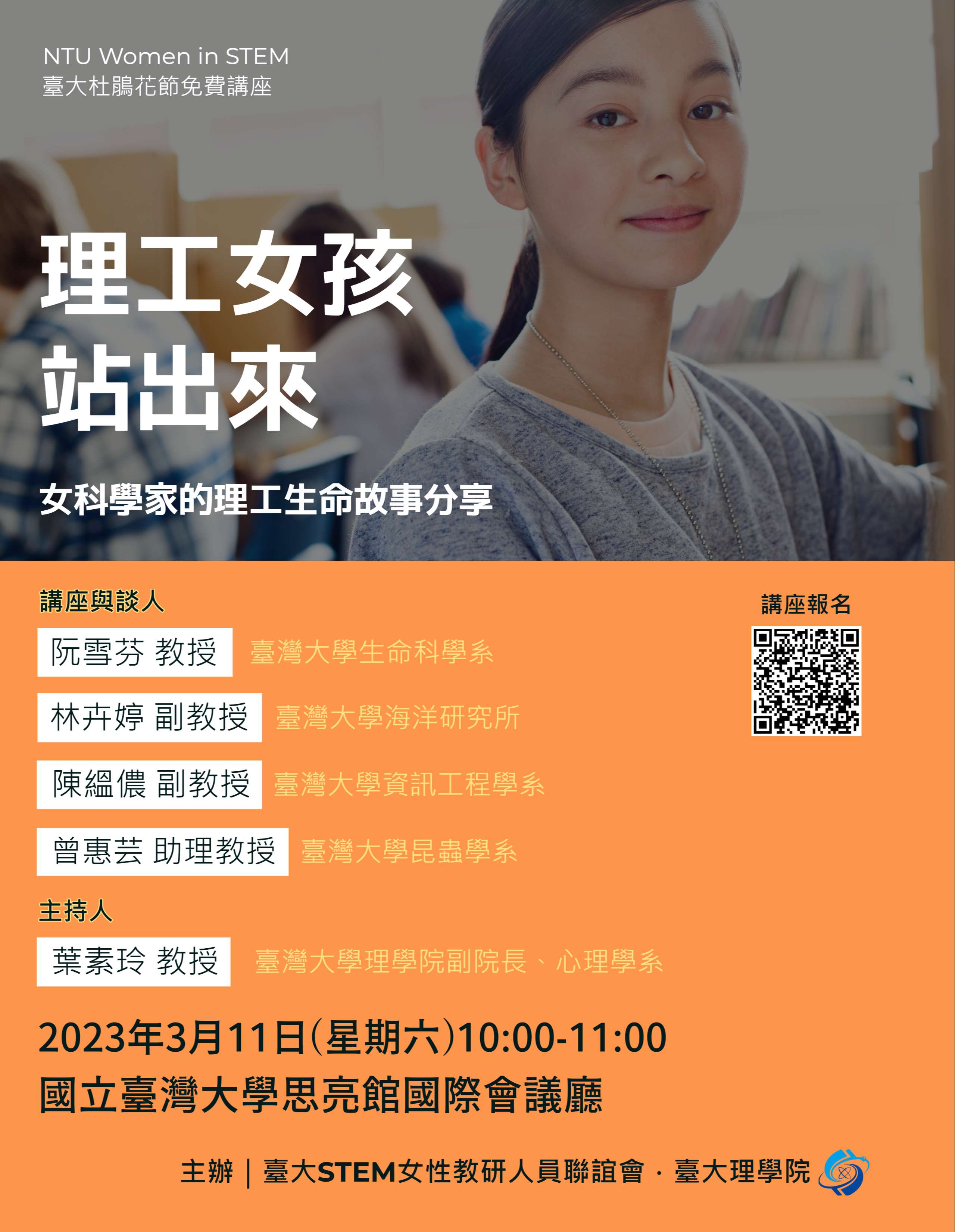 (四)與談人:阮雪芬教授(生命科學系、生醫電子與資訊學研 究所) 、林卉婷副教授(海洋研究所)、陳縕儂副教授 (資訊工程學系)、曾惠芸助理教授(昆蟲學系)等(以上依 姓氏筆劃排列)。